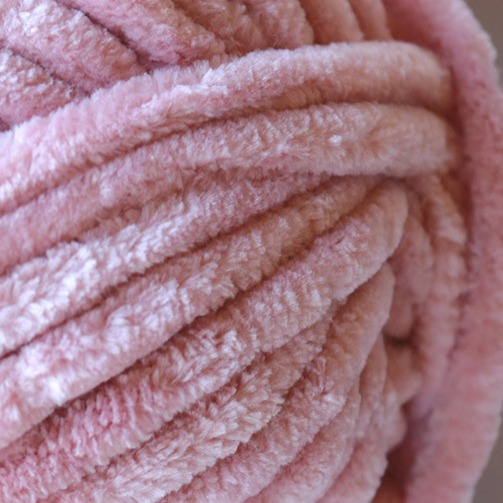 Loops & Threads Sweet Snuggles – Blush, 100% polyester size 7 yarn, (2 skeins) 218 yards (Currently on sale at Michael’s for just $6.99!).